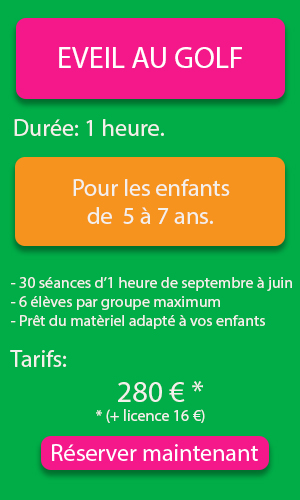 - * Avantages: 15 seaux de balles offerts, 6 élèves max par groupe, sorties sur le parcours en format compétition (1er classement ou amélioration de l’index (classement), 5 leçons individuelles de 30 mn incluses et valables uniquement pendant les vacances scolaires, licence FFG incluse).