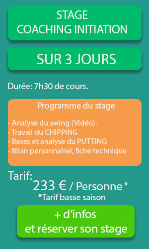 Si vous n’avez jamais osé joué au Golf, le but de ce stage sera de vous faire découvrir tous les fondamentaux, le grip (positions des mains sur le club), le positionnement de votre corps en général devant la balle, l’alignement de tout l’ensemble dans la pratique du jeu, tous les compartiments du jeu de Golf, à savoir le putting (partie finale du jeu de golf), le chipping ( les approches de 0 à 20,30 mètres), et le Grand jeu (les longs coups).