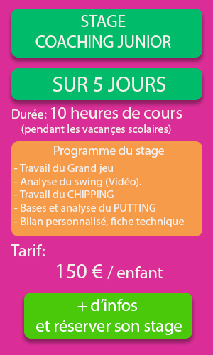 Pour information, Le Stage Coaching Junior sera programmé à chaque vacances scolaires, n’hésitez pas à vous renseigner auprès du PRO pour les inscriptions, les créneaux horaires etc…